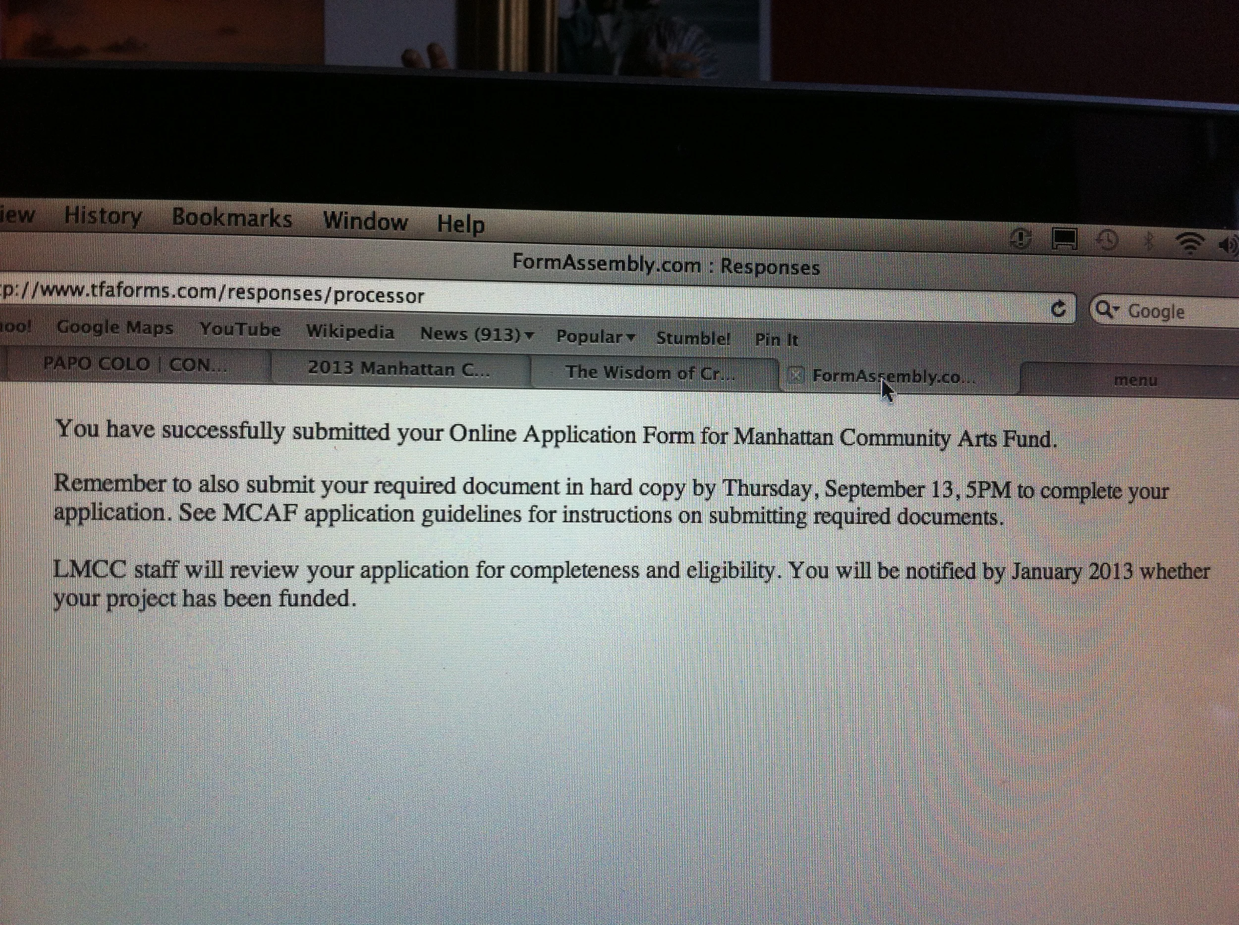 (I hate talking about these things out loud. I feel like I'm cursing myself if I tell you I applied to this. I suppose there's only one way to break the curse. Tell you I applied for it and get it. I've been turned down for so many things I have applied for in the past. It absolutely injures my pride. When I went to the orientation, the speaker said this was usually the first grant artists get. I would very much like to get this grant. Something else I would not say out loud. I don't want to jinx myself. Maybe the real jinx is feeling like I can't share this part of the process with the world at large. All the speed bumps along the way to something great. For some reason, I want to make it look easy. You should know - I sweat it. A Lot.)